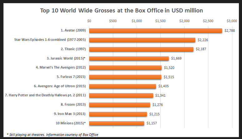 Surprisingly in the age of pirating and video-streaming services, 2025 brought us already 4 top-10 grossing movies. According to Box Office Mojo, the Best Opening Weekend ever was also for a 2025 movie: Jurassic World reaped in $208.8 million in its opening weekend in the United States. Worldwide this was even $524.4 million. Probably the new Star Wars will break this record. Next to that, the opening during the Holiday Season with many people enjoying days off, may give an additional boost to box office sales.