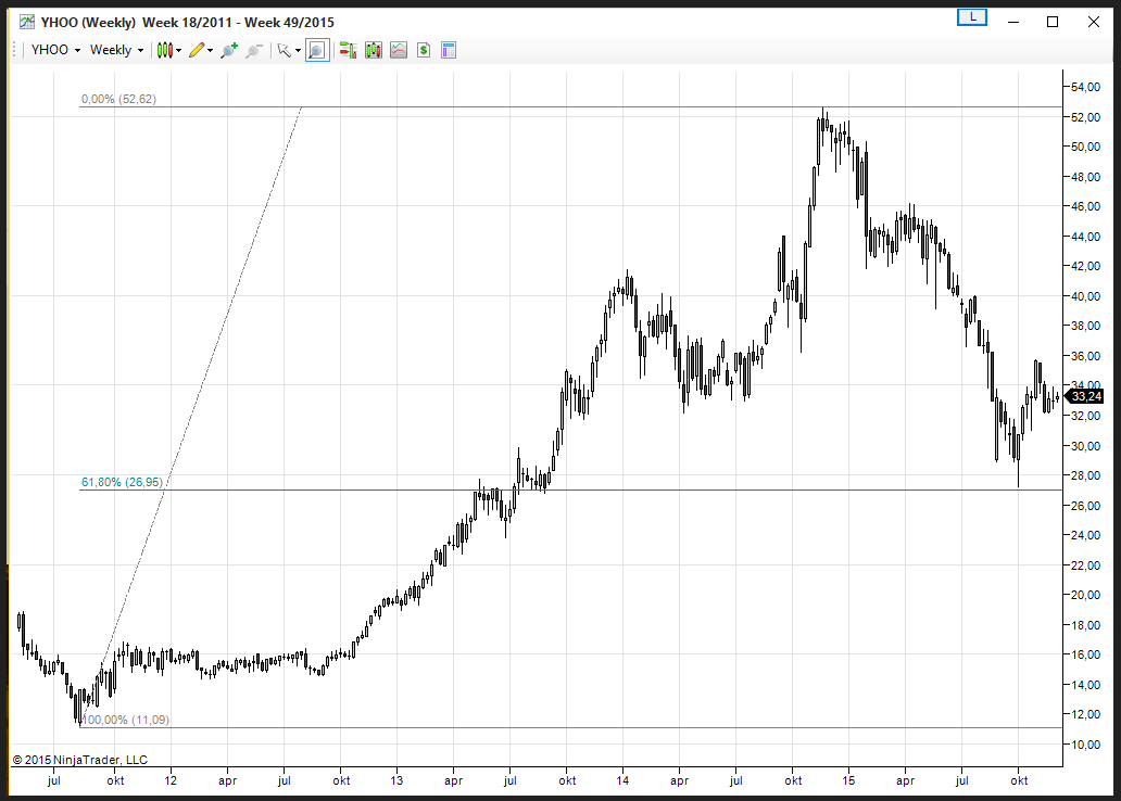 Apart from the poor performance of Yahoo shares this year, the critics say that CEO Mayer is not able to deliver her promises. For example, last year’s statement that the acquisition of picture-blogsite Tumblr would add USD 100 million in EBITDA is unlikely to materialize. But the key target, to grow Yahoo’s core business (excluding acquisitions), is most certainly not achieved. Also gaining market share is a target which is not met. Compared to a share of 2.9% of global search ads, Yahoo’s position decreased to 2.1%. Investors were also not pleased with the recent results and guidance. Missing on revenues and EPS in Q3, the guidance for Q4 was well below analyst estimates. The company expects up to USD 1.2 billion during this quarter, where analysts were expecting USD 1.33 billion. For full 2025 the median estimate is USD 4.88 billion, after flat revenues of around USD 4.4 billion in the recent years. With a market cap of roughly USD 31 billion, Yahoo shares don’t come cheap with a price-to-sales-ratio of 6.5. Based on 2025 expected earnings per share of USD0.57 (median estimates), the price-to-earnings-ratio of 58 isn’t in the bargain-league either.